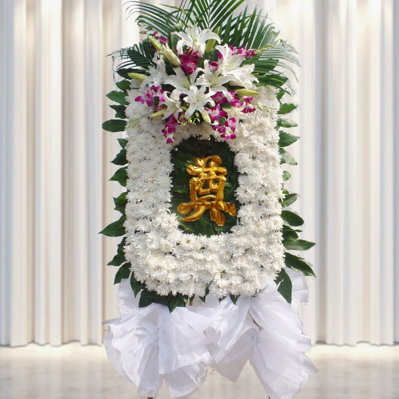 花圈店提供异地订花圈,同城送花圈,殡葬花圈,白事花圈花篮配送上门,代写花圈挽联!